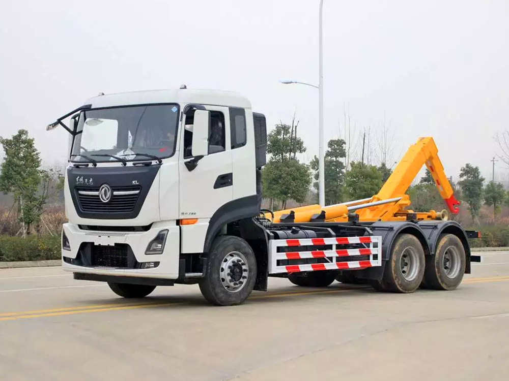东风天龙后双桥车厢可卸式垃圾车