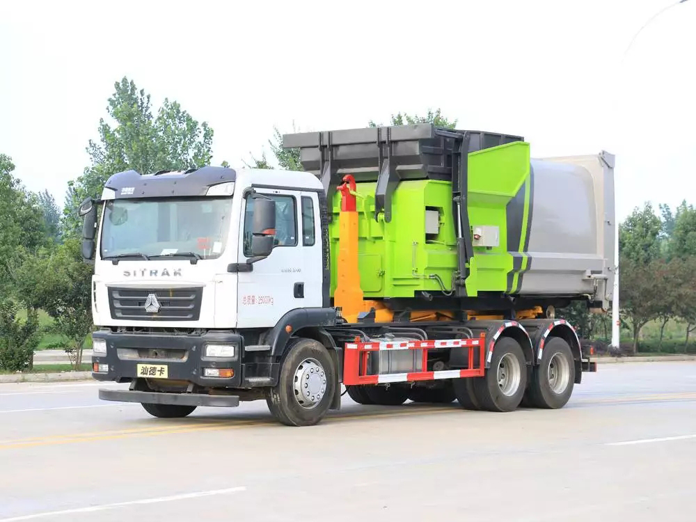 重汽汕德卡后双桥车厢可卸式垃圾车