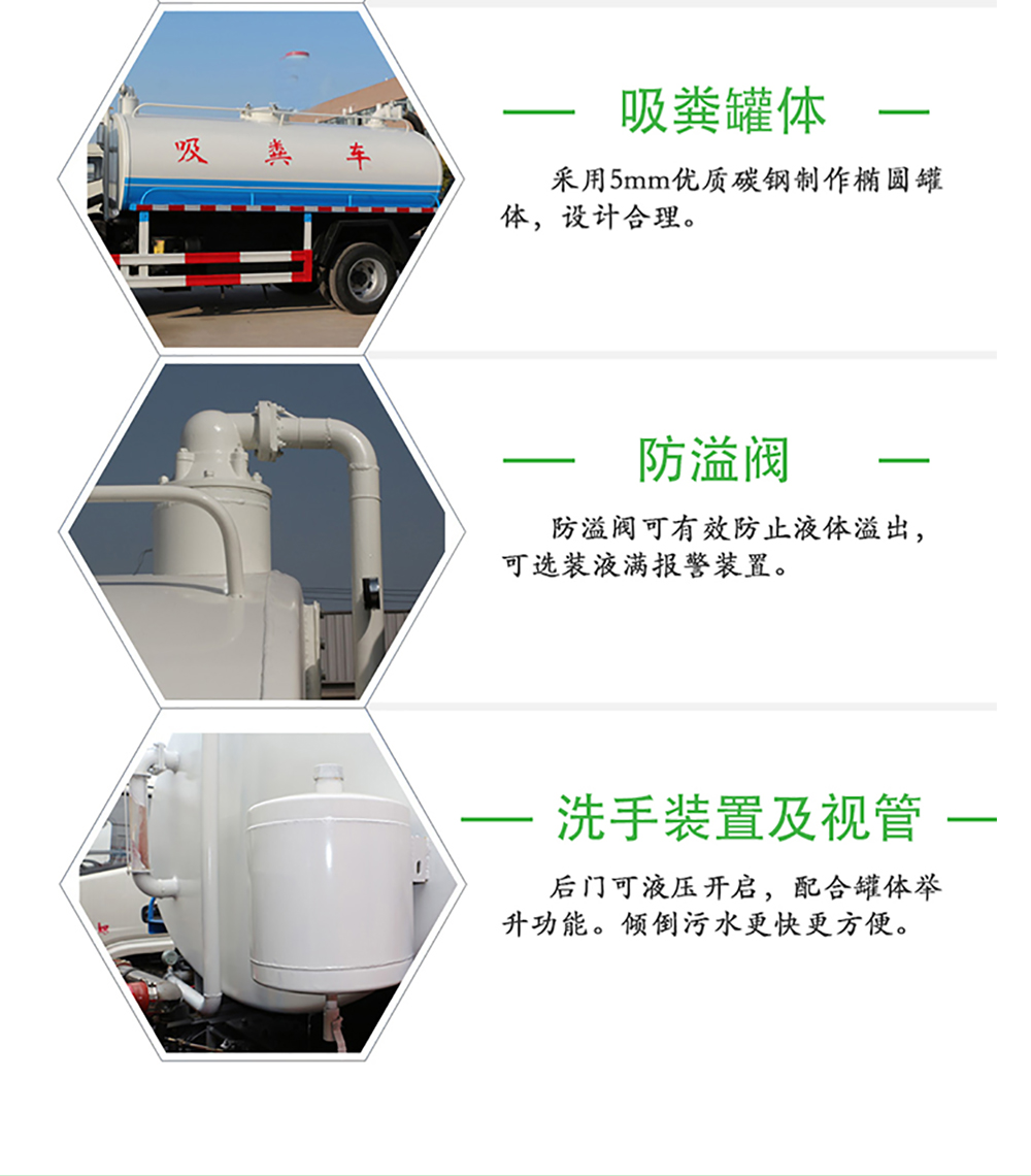 | 整车说明: | 随底盘选装前面罩,前保险杠,前组合灯具,前雾灯。选装真空泵,选装后部排放口,选装无臂架结构。罐体有效容积8.72立方米;罐体外形尺寸(长×长轴×短轴)(mm)为:4200×2100×1480。侧防护采用Q235,螺栓连接。后防护采用Q235,焊接连接。后防护截面高度尺寸120mm,截面宽度尺寸50mm,下边缘离地高度470mm。采用3800轴距底盘.ABS型号/厂家:ABS型号:ABS/ASR-24V-4S/4M,厂家:襄阳东风隆诚机械有限责任公司。专用装置为罐体,吸污泵等,主要用于吸粪、吸污。随底盘选装前面罩。随底盘选装驾驶室。 | ||