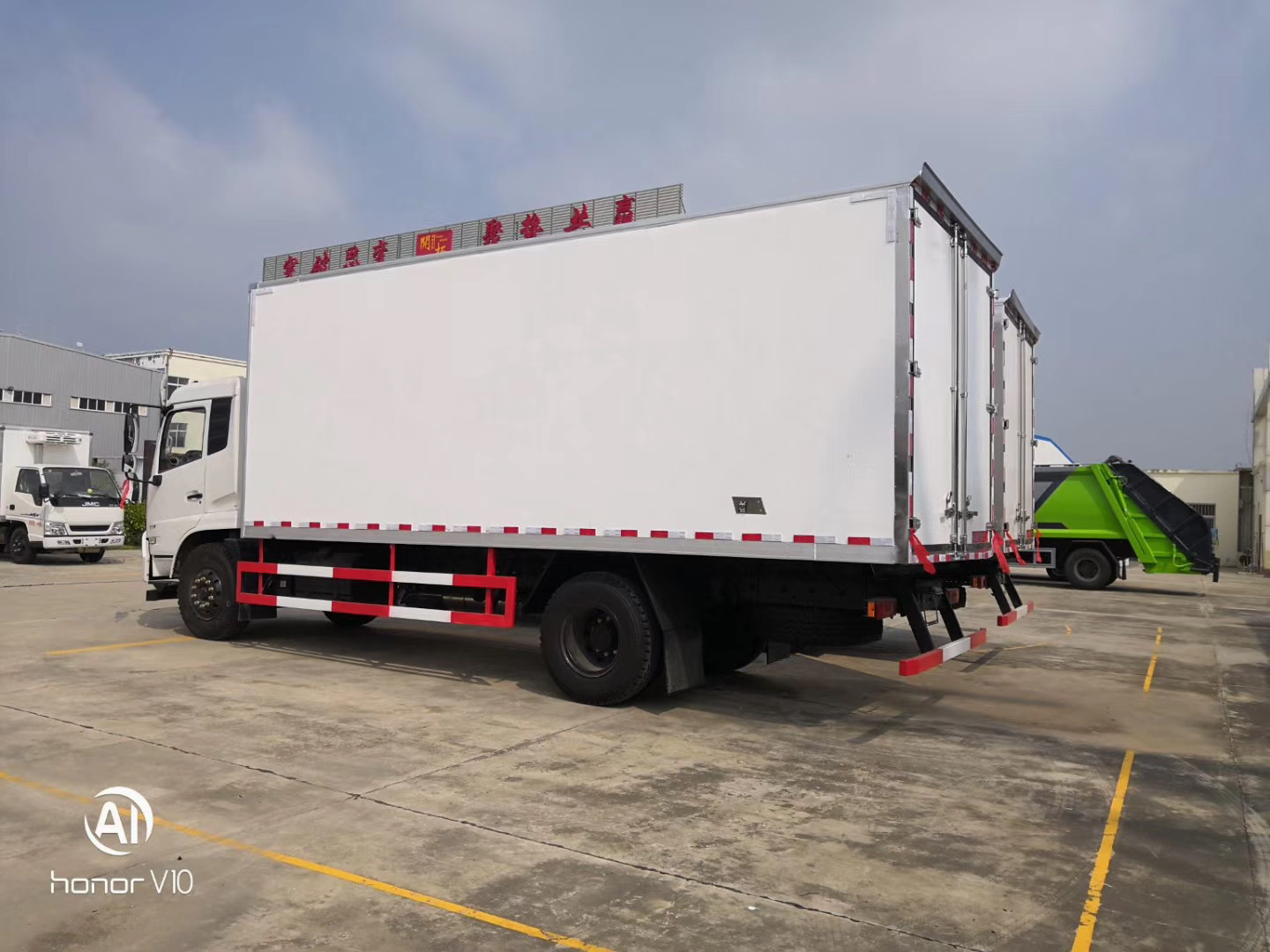 | 整车说明: | 随底盘选装前雾灯,选装后视镜,选装侧窗玻璃,选装驾驶室前围面罩;驾驶室顶部选装导流罩;选装厢体结构;厢体顶部封闭,不可开启,侧面选装开门和不开门;选装升降尾板,尾板收起状态时的水平长度为295mm;选装其它厂家功率相当的制冷机组;侧防护:材质Q235,螺栓连接,后下防护:材质Q235,螺栓连接,断面尺寸120×60mm,离地高度460mm;安装具有卫星定位功能的行驶记录仪;装有ABS,ABS型号及生产厂家:3631010-C2000/东科克诺尔商用车制动系统(十堰)有限公司,J ABS/焦作博瑞克控制技术有限公司;D4.0NS6B170发动机对应的油耗值为25.6L/100km,D4.0NS6B185发动机对应的油耗值为25.6L/100km. | ||