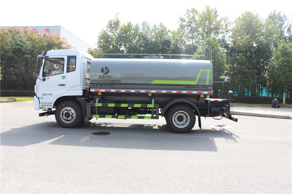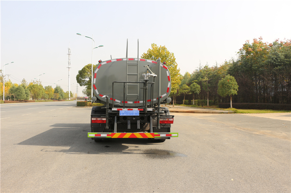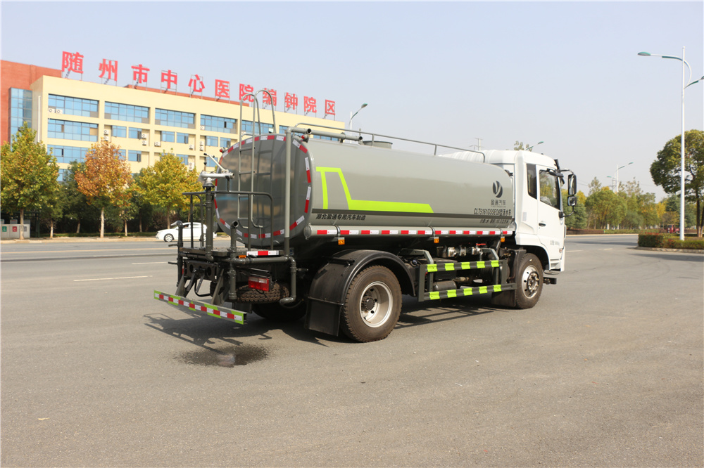 专用功能配置:罐体实际容积约为12.立方米,采用武钢优质碳钢板卷压成型。配备专用洒水泵,自吸自排。前喷后洒、侧喷、后工作平台及洒水高压炮。洒水泵垂直自吸高度为6米左右,整车洒水宽度14米左右,后工作平台水炮可调成:直冲状、大雨、中雨、小雨、毛毛雨,有效射程≥28米,整车带消防接头、水位计,自流阀。后工作平台主管道有一个一寸的浇花接口,附送2根3米水管,1个爬梯,两侧及后保险杠。