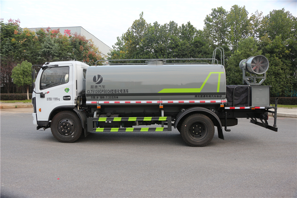 专用功能配置:罐体实际容积约为9立方米,采用武钢优质碳钢板卷压成型。配备专用洒水泵,自吸自排,前喷后洒、侧喷、后工作平台及洒水高压炮。洒水泵自吸高度为6米左右,整车洒水宽度14米左右,后工作平台水炮可调成:直冲状、大雨、中雨、小雨、毛毛雨,有效射程≥28米,整车带消防接头、水位计,自流阀。后工作平台主管道有一个一寸的浇花接口,附送2根3米水管,1个爬梯,两侧及后保险杠。