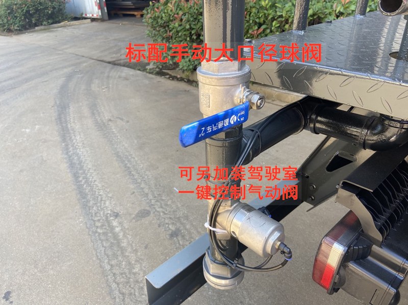 | 选装配置: 1、可选装4个或6个驾驶室内操作气动球阀; 2、可选装前置电子洒水炮驾驶室一键操作。 3、后平台可加装30米、40米雾炮 |