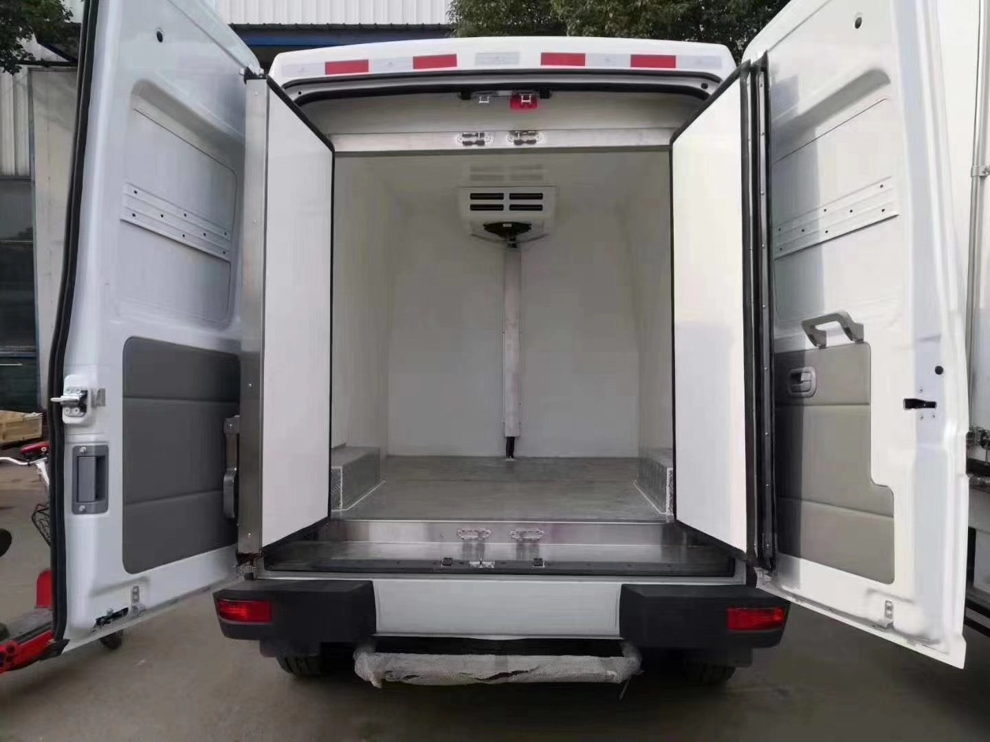 厢板材质:内外壁板选用国内优质玻璃钢(不吸光、隔热性好、硬度强、抗氧化);中间保温层选用冷藏专用聚氨酯保温材料。地板采用铝花纹板,门边条采用迷宫式橡胶密封条。厢体配件:厢体周边铝合金包边,不锈钢包角,不锈钢门锁,不锈钢门框及合页,厢体内节能LED照明灯。单开或者双开后门,可加装通风槽,温湿度记录仪。