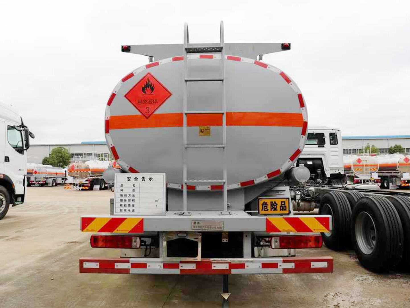 | 整车说明: | 该车适用于危险品运输,运送危险货物车辆类型为:FL型,运输介质最大密度830千克/立方米.罐体有效容积12.9立方米,罐体外形尺寸(长×宽×高)(mm):5700×2000×1400.仅采用4700mm轴距底盘.侧、后防护材料均为Q235,螺栓连接,后防护截面尺寸(mm)60×120,下边缘离地高490mm.随底盘选装驾驶室.仅选用排气管前置,限速装置(限速80km/h),前轮盘式制动及子午线轮胎的底盘,转向轮安装轮胎爆胎应急防护装置,后轴装备空气悬架,安装带有卫星定位功能的行驶记录仪.EBS型号/生产厂家:EBS5/克诺尔制动系统(大连)有限公司.发动机/油耗值(L/100km)对应关系为:CA6DLD-22E6/26.53.发动机最大净功率为:CA6DLD-22E6(162kw).选装直接供电式ETC车载装置.后轴选装弧形挡泥板。 | ||