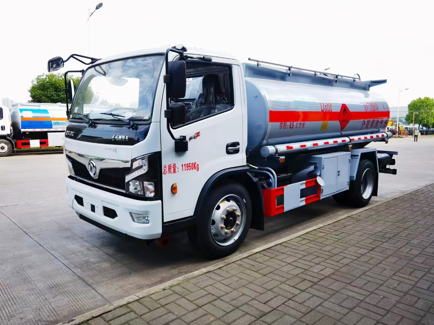 | 整车说明: | 1、该车适用于危险品运输,运送危险货物车辆类型为:FL型,类项号:3。运输介质:柴油、煤油、汽油,密度:830、800、700千克/立方米,罐体有效容积8.5立方米,罐体外形尺寸(长×宽×高)(mm):4600×1950×1230,仅采用3800mm轴距;罐体上部选装上走道;选装弧形挡泥板。2、侧防护采用冷弯型钢/Q235,螺栓连接。后防护采用冷弯型钢/Q235,焊接,截面高120mm,截面宽60mm,下边缘离地高500mm。加油机型号及生产企业:BL1111Z/珠海市贝林加油设备有限公司中山分公司,HS1812B/托肯恒山科技(广州)有限公司,SKES-1112/恒和嘉华科技有限公司(上海伯莱机械有限公司),SK20QF-111A、SK20QF-222A/郑州三金石油设备制造有限公司,CS20D1110F/正星科技有限公司,JSK-70B1121CZ,JSK-70B1121C,JSK45B1121C/稳恩佳力佳(北京)石油化工设备有限公司, ZH6444/佛山市众泽机电科技有限公司, XTST121BF1/邢台正润通科技发展有限公司,TA-1111KFJ/沈阳航天新阳机电有限公司。3、随底盘选装前面罩,前保险杠,前组合灯具,前雾灯。仅选用排气管前置、限速装置(限速80km/h)、前轮盘式制动及子午线轮胎的底盘,安装带有卫星定位功能的行驶记录仪。ABS厂家及型号:襄阳东风隆诚机械有限责任公司/ABS/ASR-24V-4S/4M。转向轮安装轮胎爆胎应急防护装置。选装后上杠,选装左右安全告示牌位置。 | ||