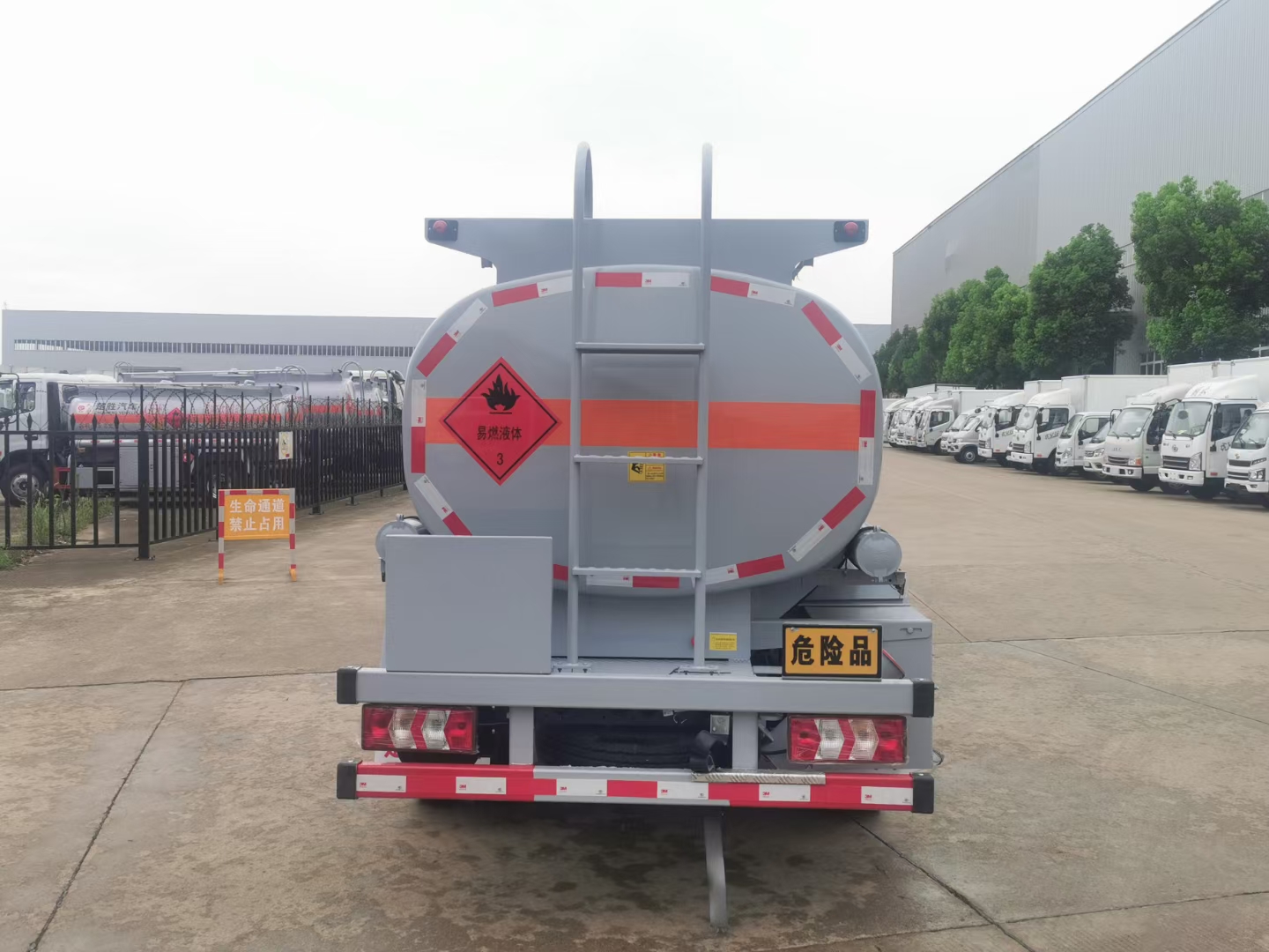 | 整车说明: | 1、该车适用于危险品运输,运送危险货物车辆类型为:FL型,类项号:3。罐体有效容积4.4立方米,罐体外形尺寸(长×宽×高)(mm):3800×1600×1050,罐体上部选装上走道,选装弧形挡泥板。加油机型号及生产企业:BL1111Z/珠海市贝林加油设备有限公司中山分公司,HS1812B/托肯恒山科技(广州)有限公司,SKES-1112/恒和嘉华科技有限公司(上海伯莱机械有限公司),SK20QF-111A、SK20QF-222A/郑州三金石油设备制造有限公司,CS20D1110F/正星科技有限公司,JSK-70B1121CZ,JSK-70B1121C,JSK45B1121C/稳恩佳力佳(北京)石油化工设备有限公司, ZH6444/佛山市众泽机电科技有限公司, XTST121BF1/邢台正润通科技发展有限公司,TA-1111KFJ/沈阳航天新阳机电有限公司。2、侧、后防护材料均采用Q235,螺栓连接,后防护截面尺寸(mm)100×50,下边缘离地高440mm。3、仅选用排气管前置、限速装置(限速80km/h)、前轮盘式制动及子午线轮胎的底盘,安装带有卫星定位功能的行驶记录仪。转向轮安装轮胎防爆应急防护装置。ABS型号/生产企业:CM4XL-4S/4M,VIE ABS-Ⅱ/广州瑞立科密汽车电子股份有限公司,浙江万安科技股份有限公司。选装ETC。 | ||
