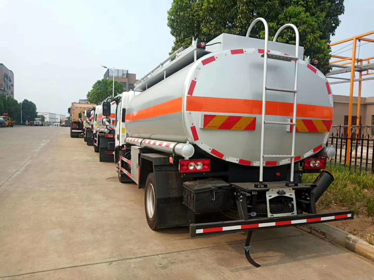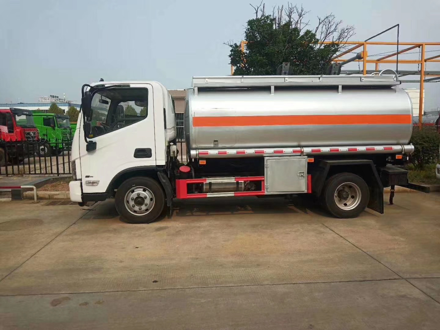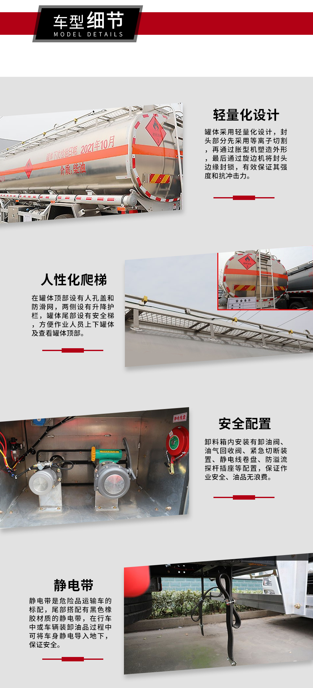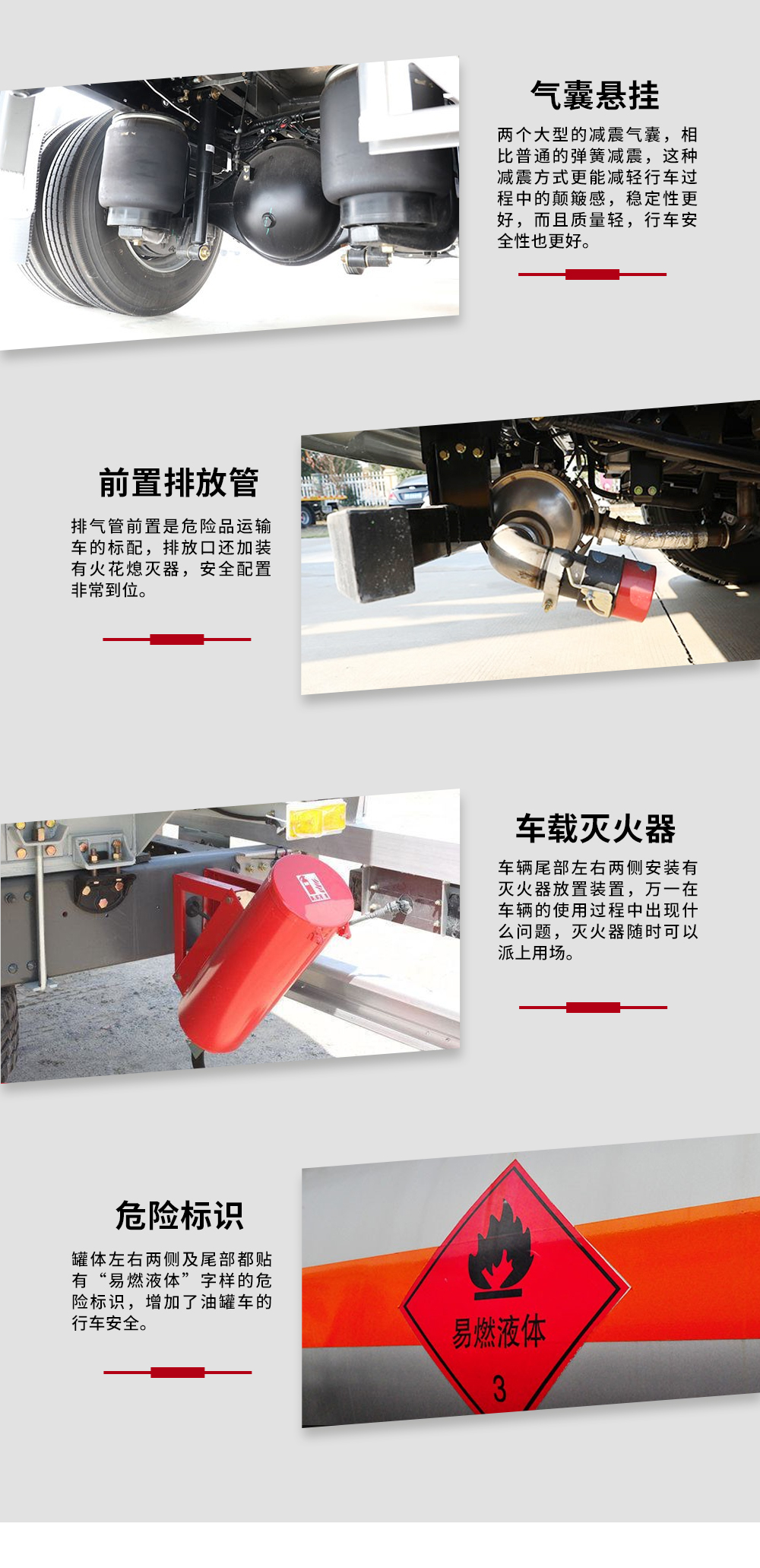 | 整车说明: | 罐体有效容积:7.5立方米;罐体外形尺寸:长4780毫米,长轴2013毫米,短轴1261毫米;罐体前段1030毫米用于装加油机;危险货物运输车辆的类型:FL型车辆;危险品类项号:3;侧防护装置材质为铝合金,连接方式为螺栓连接;后下部防护装置材质为铝合金,连接方式为螺栓连接,断面尺寸120×80毫米,离地高度450毫米;前轮采用盘式制动器;采用限速装置,限速80千米/小时;采用排气管前置;仅选装子午线轮胎;安装具有卫星定位功能的行驶记录仪;加油机型号:HS1812B,生产厂家:托肯恒山科技(广州)有限公司;选装正星牌加油机,型号:CS20D1110F,生产厂家:正星科技股份有限公司.ABS系统控制器型号/生产企业:ABS-E/威伯科汽车控制系统(中国)有限公司,ABS-VI·E/广州瑞立科密汽车电子股份有限公司.仅选用F3.8NS6B156发动机. | ||