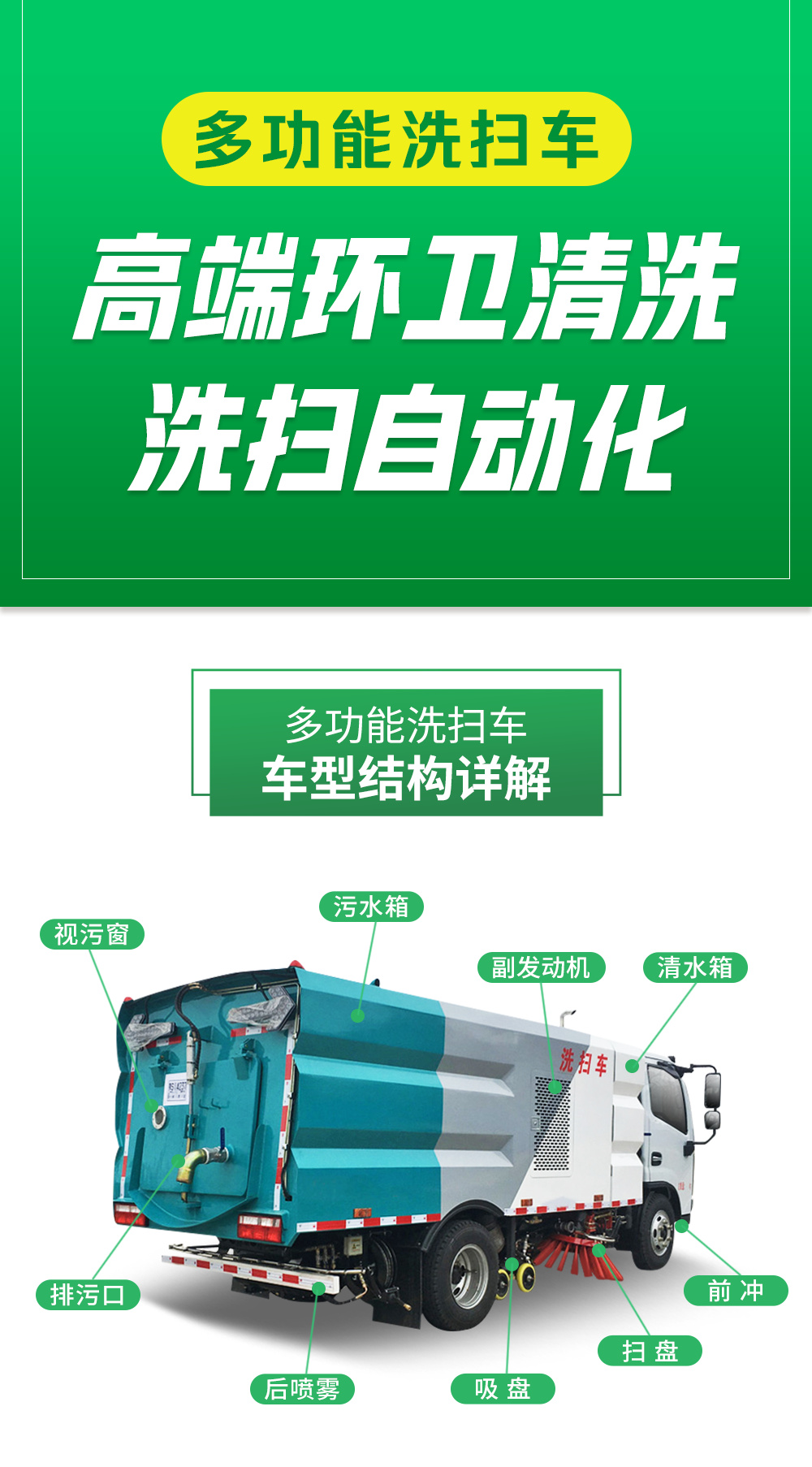 | 产品名称: | 洗扫车 | 外型尺寸(mm): | 7000,7150,7250,7350,7650,6800×2200×2700(mm) |