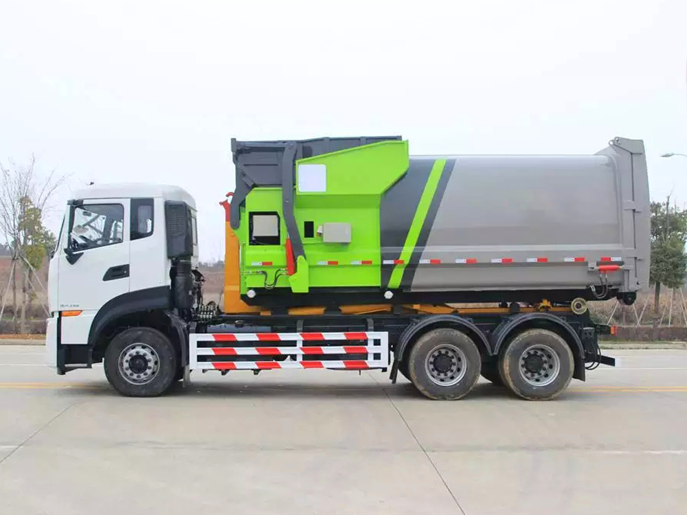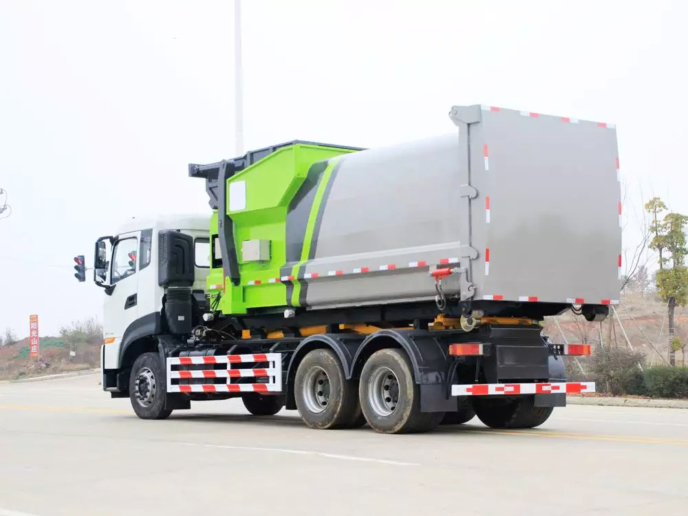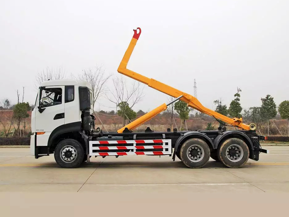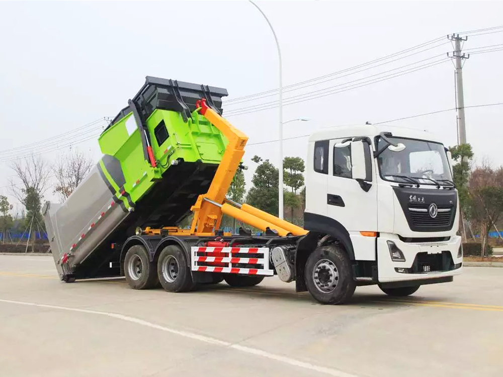 东风天龙后双桥车厢可卸式垃圾车