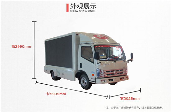 | 产品名称: | 宣传车 | 外型尺寸(mm): | 5995×2025×2995 |