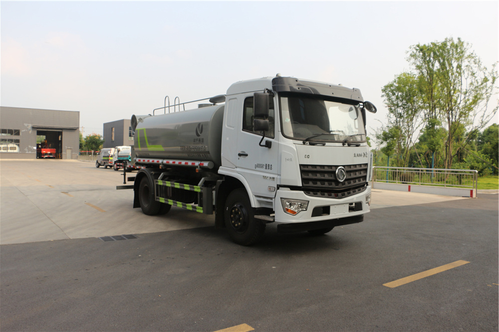 专用功能配置:罐体实际容积约为12立方米,采用武钢优质碳钢板卷压成型。配备专用洒水泵,前喷后洒、侧喷、后工作平台及洒水高压炮。洒水泵自吸高度为6米左右,整车洒水宽度14米左右,后工作平台水炮可调成:直冲状、大雨、中雨、小雨、雾状,有效射程≥28米,整车带消防接头、水位计,自流阀及自吸功能。后工作平台主管路带1寸浇花接口,附送2根3米水管,1个爬梯,两侧及后保险杠。