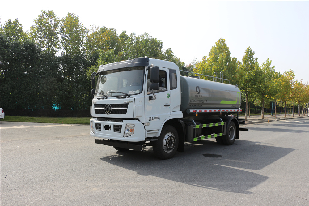 专用功能配置:罐体实际容积约为12.立方米,采用武钢优质碳钢板卷压成型。配备专用洒水泵,自吸自排。前喷后洒、侧喷、后工作平台及洒水高压炮。洒水泵垂直自吸高度为6米左右,整车洒水宽度14米左右,后工作平台水炮可调成:直冲状、大雨、中雨、小雨、毛毛雨,有效射程≥28米,整车带消防接头、水位计,自流阀。后工作平台主管道有一个一寸的浇花接口,附送2根3米水管,1个爬梯,两侧及后保险杠。
