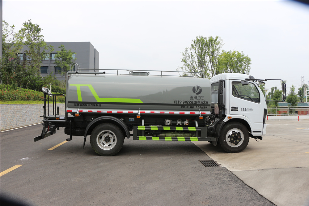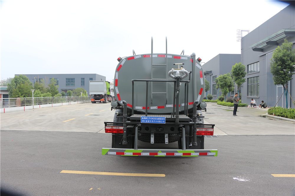 专用功能配置:罐体实际容积约为9.35立方米,采用武钢优质碳钢板卷压成型。配备专用洒水泵,自吸自排,前喷后洒、侧喷、后工作平台及洒水高压炮。洒水泵自吸高度为6米左右,整车洒水宽度14米左右,后工作平台水炮可调成:直冲状、大雨、中雨、小雨、毛毛雨,有效射程≥28米,整车带消防接头、水位计,自流阀。后工作平台主管道有一个一寸的浇花接口,附送2根3米水管,1个爬梯,两侧及后保险杠。