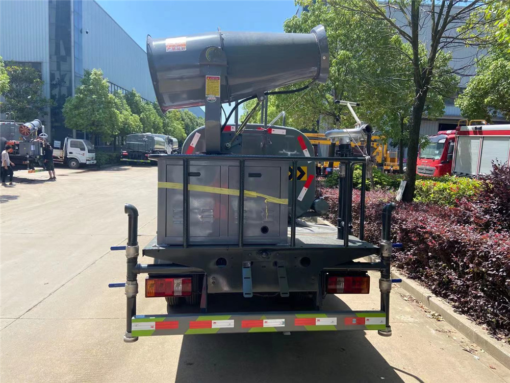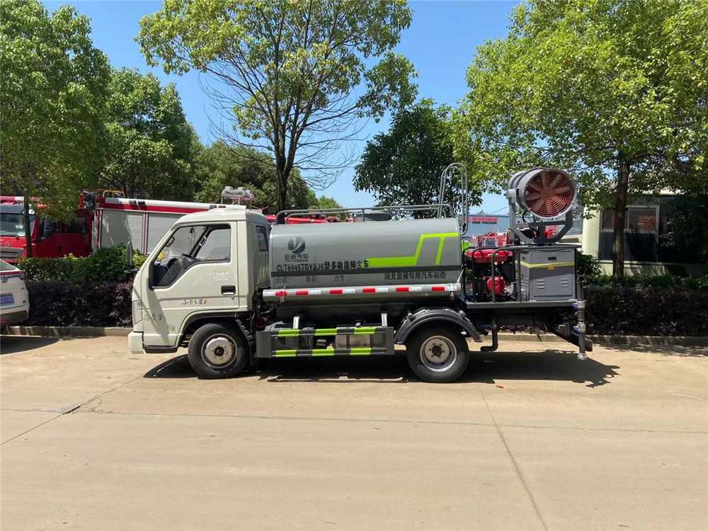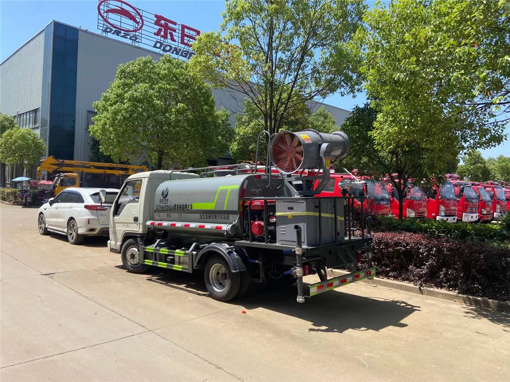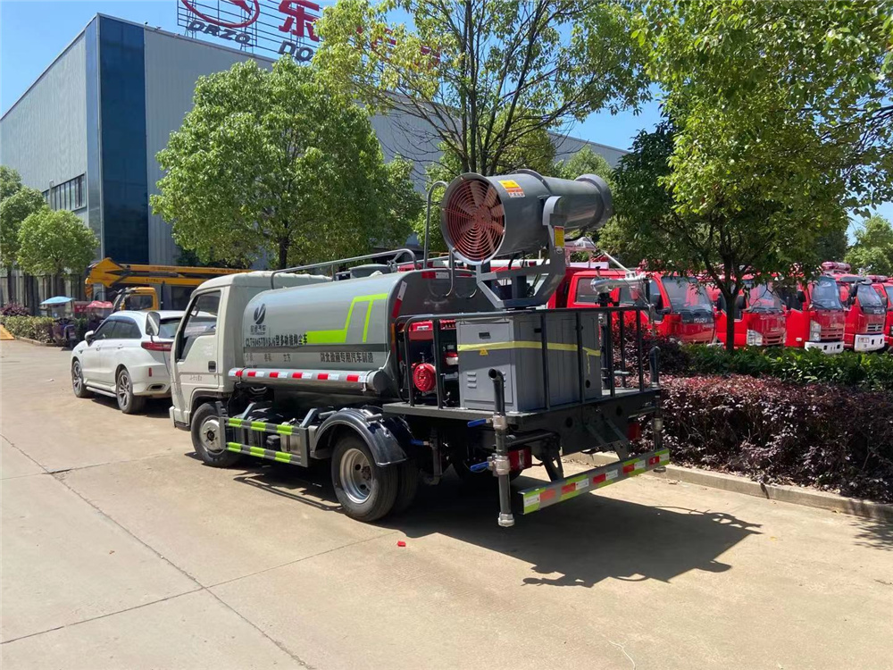专用功能配置:罐体实际容积约为2.8立方米,采用武钢优质碳钢板卷压成型。配备专用洒水泵,自吸自排,前喷后洒、后对冲、侧喷、后工作平台及洒水高压炮。洒水泵自吸高度为6米左右,整车洒水宽度14米左右,后工作平台水炮可调成:直冲状、大雨、中雨、小雨、雾状、有效射程≥28米,整车带消防接头、水位计,自流阀及自吸功能。后平台主管道有一个一寸的浇花接口,附送2根3米水管,1个爬梯,两侧及后保险杠。