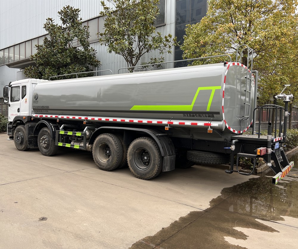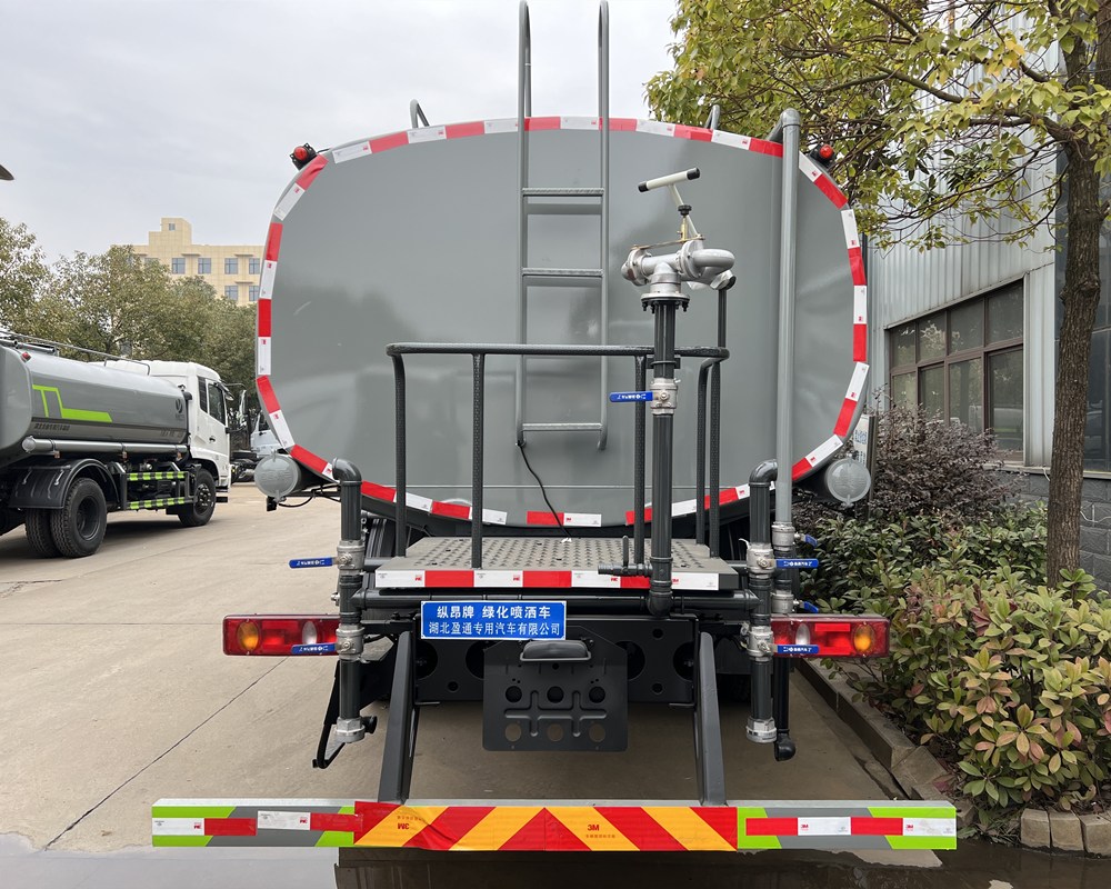 专用功能配置:罐体实际容积约为25立方米,公告有效参数19.14立方米。额定质量18910KG。采用武钢优质碳钢板卷压成型。配备专用洒水泵,自吸自排,前喷后洒、侧喷、左右对冲、后工作平台及洒水高压炮。洒水泵自吸高度为6米左右,整车洒水宽度14米左右,后工作平台水枪上下左右360度旋转可调成:直冲状、大雨、中雨、小雨、雾状,有效射程≥28米,整车带消防接头、水位计,自流阀。后工作平台主管路带1寸浇花接口,附送2根3米水管,1个爬梯,两侧及后保险杠。 |