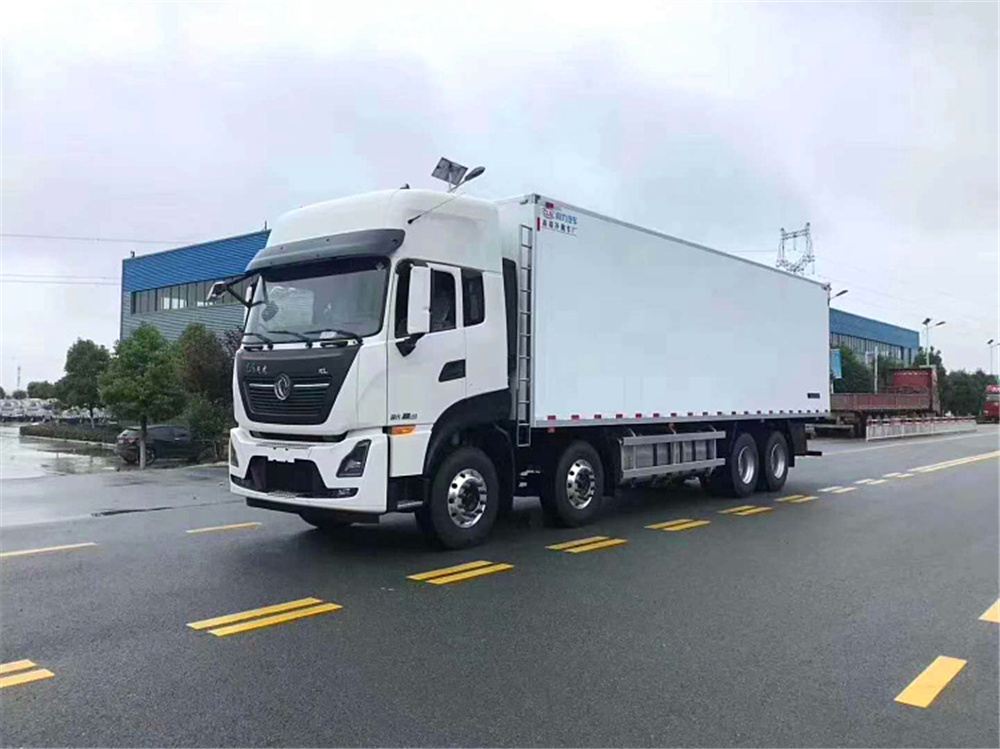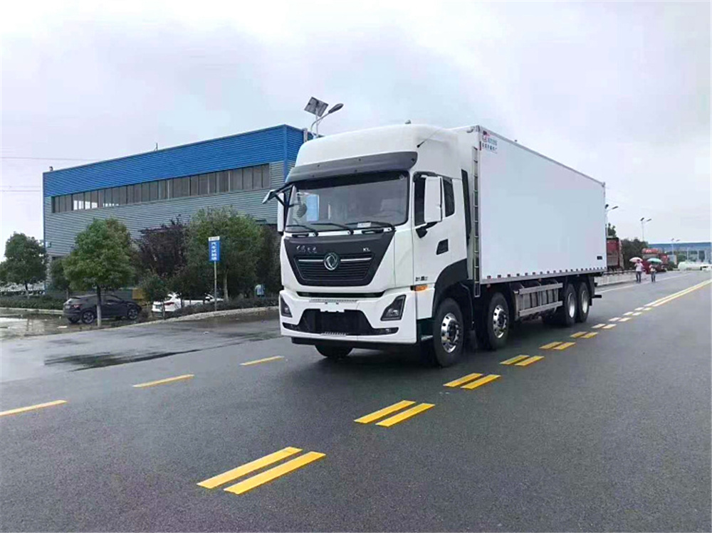 东风天龙KL系列前四后八冷藏车是一款厢体长度9.6米冷藏车型,搭载了沃尔沃技术的东风商用车生产的龙擎DDi11E465-60发动机,从产品的可靠性和技术成熟度来说,都得到了市场的验证。配置为:D320-H高顶双卧车身、四点气囊悬浮驾驶室(液压电动翻转),东风14档变速箱,空调,遥控钥匙+中控门锁,电动升降门窗玻璃,电动调节后视镜,600L+400L铝合金油箱,12R22.5 18PR真空胎,5/10T前后桥,300×80×8车架断面,定速巡航,ABS,气囊座椅,多媒体屏,GPS卫星定位功能的行驶记录仪车载终端,自动调整臂。