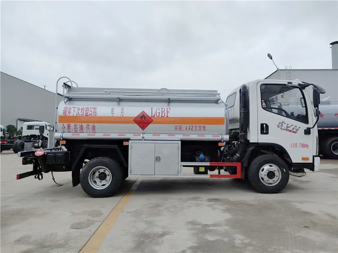| 整车说明: | ABS型号:CM4XL-4S/4M,VIE ABS-II;ABS生产企业:广州瑞立科密汽车电子股份有限公司,浙江万安科技股份有限公司;安装有限速装置;限速装置限速(km/h):80;安装有具有卫星定位功能的行驶记录仪;选装描述:该车型可选装ETC车载装置.选装导流罩.选装新结构导流罩.选装排半驾驶室.选装改侧窗的驾驶室.选装新前脸驾驶室;侧后防护情况:侧/后防护材料均为Q235,螺栓连接和焊接;后防护截面尺寸100×50mm,下边缘离地高400mm;罐体有效容积(立方米)、罐体外形尺寸(mm):罐体有效容积4.42立方米,加油机位于车辆一侧时,罐体尺寸(长×长轴×短轴)(mm)为:3800×1600×1000,3600×1500×1000,加油机位于罐体前部时,罐体尺寸(长×长轴×短轴)(mm)为4000(加油机仓800)×1750×1150;专用功能及装置:该车适用于危险品运输;FL型车辆;准运介质最大密度830千克/立方米;其他说明:该车仅选用排气管前置,前盘制动,子午线轮胎,转向轮安装轮胎爆胎应急防护装置;选装后部结构样式。随底盘选装左侧两侧布局。选装罐体上部无走道。加油机型号及生产企业:HS1812B/托肯恒山科技(广州)有限公司,SK20QF-111A,SK20QF-222A/郑州三金石油设备制造有限公司,CS20D1110F/正星科技有限公司,JSK-70B1121CZ,JSK-70B1121C,JSK45B1121C/稳恩佳力佳(北京)石油化工设备有限公司, ZH3111/佛山市众泽机电科技有限公司,HT-CZ1111/湖北华特专用设备有限公司,FB80(EX),ACZS-1112,ACZS-1111/永嘉县奥诚五金制品有限公司,HM-8111/日照惠明机械设备有限公司。 | ||