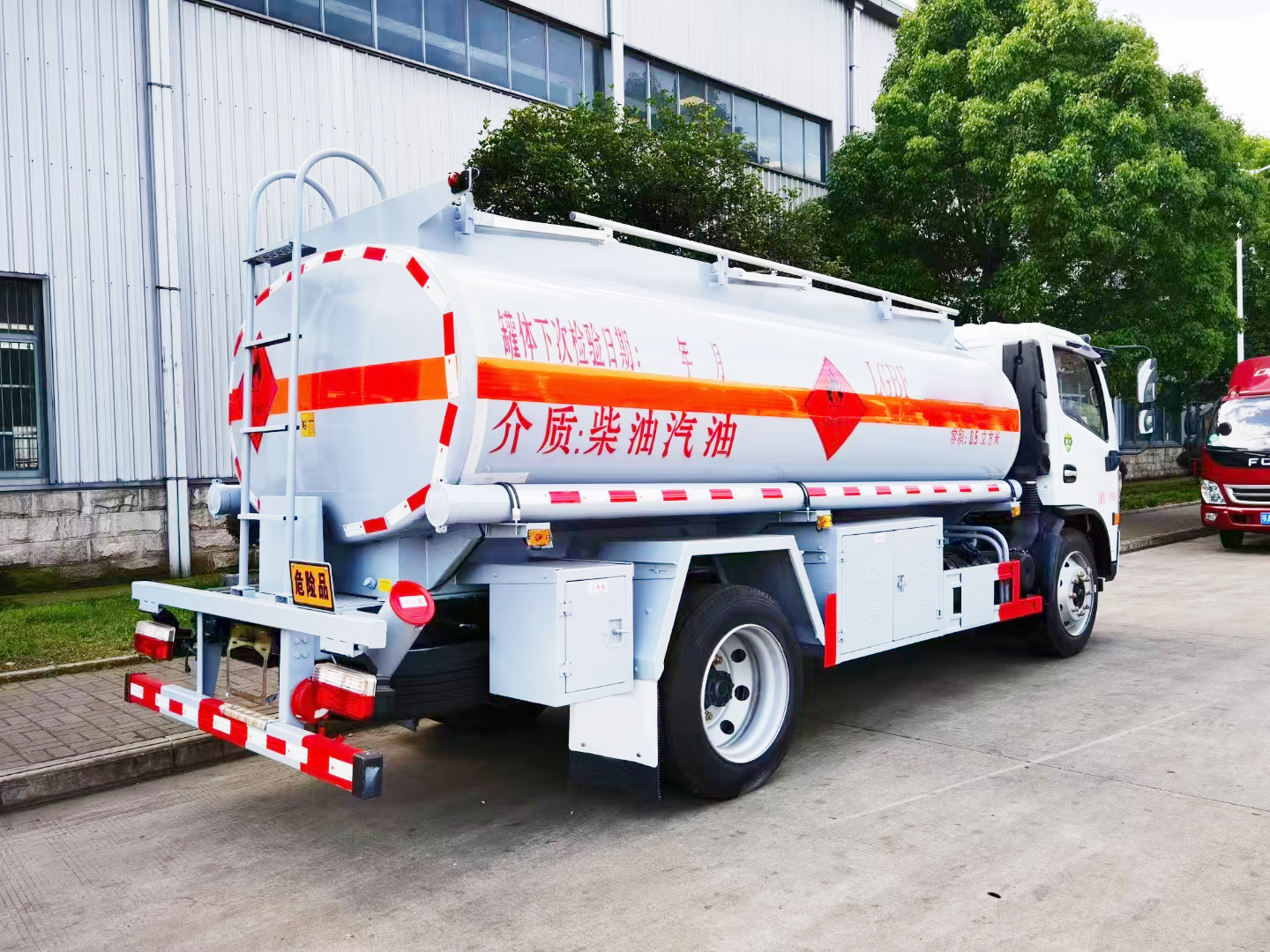 | 整车说明: | 1、该车适用于危险品运输,运送危险货物车辆类型为:FL型,类项号:3。运输介质:柴油、煤油、汽油,密度:830、800、700千克/立方米,罐体有效容积8.5立方米,罐体外形尺寸(长×宽×高)(mm):4600×1950×1230,仅采用3800mm轴距;罐体上部选装上走道;选装弧形挡泥板。2、侧防护采用冷弯型钢/Q235,螺栓连接。后防护采用冷弯型钢/Q235,焊接,截面高120mm,截面宽60mm,下边缘离地高500mm。加油机型号及生产企业:BL1111Z/珠海市贝林加油设备有限公司中山分公司,HS1812B/托肯恒山科技(广州)有限公司,SKES-1112/恒和嘉华科技有限公司(上海伯莱机械有限公司),SK20QF-111A、SK20QF-222A/郑州三金石油设备制造有限公司,CS20D1110F/正星科技有限公司,JSK-70B1121CZ,JSK-70B1121C,JSK45B1121C/稳恩佳力佳(北京)石油化工设备有限公司, ZH6444/佛山市众泽机电科技有限公司, XTST121BF1/邢台正润通科技发展有限公司,TA-1111KFJ/沈阳航天新阳机电有限公司。3、随底盘选装前面罩,前保险杠,前组合灯具,前雾灯。仅选用排气管前置、限速装置(限速80km/h)、前轮盘式制动及子午线轮胎的底盘,安装带有卫星定位功能的行驶记录仪。ABS厂家及型号:襄阳东风隆诚机械有限责任公司/ABS/ASR-24V-4S/4M。转向轮安装轮胎爆胎应急防护装置。选装后上杠,选装左右安全告示牌位置。 | ||